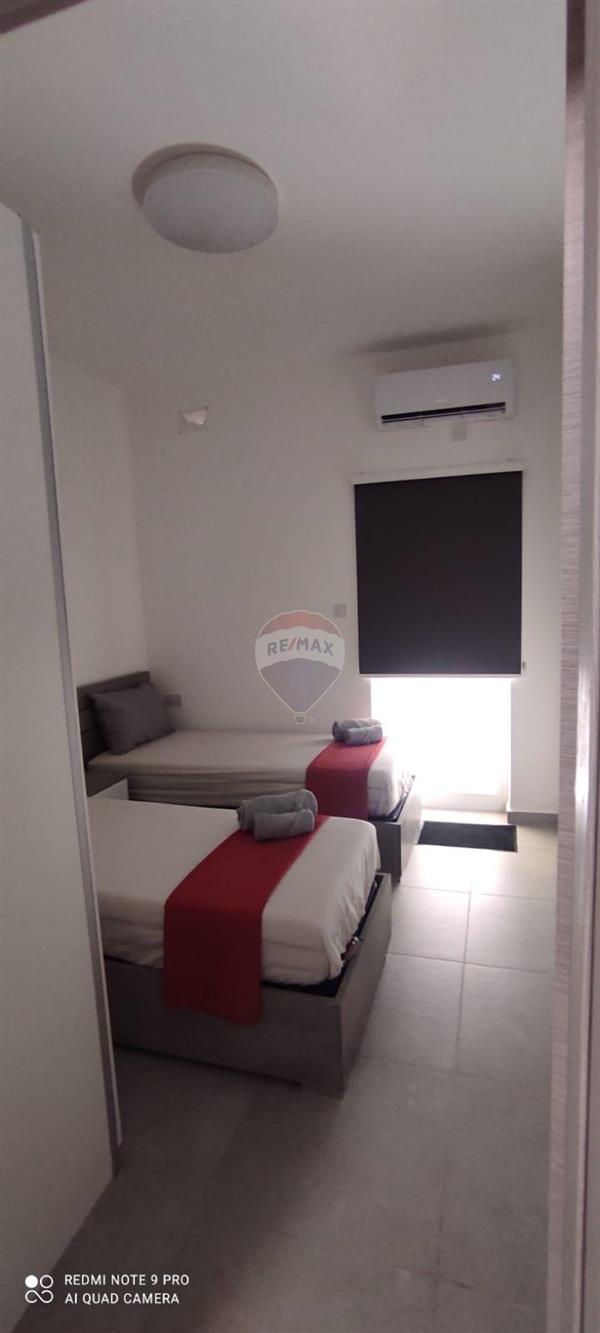 Stylish 2-Bedroom Ground Floor Apartment with Spacious Courtyard Near the Sea in Bugibba Just minutes from the coastline, this beautifully presented two-bedroom, one-bathroom ground floor apartment offers modern comfort blended with relaxed coastal living. Fully air-conditioned throughout, the property features an inviting open-plan living and dining area and a contemporary kitchen finished to a high standard. Both bedrooms are well-sized, providing comfort and practicality. An internal courtyard enhances natural ventilation and brightness, while a generous outdoor courtyard offers the ideal space for relaxing or entertaining guests. Perfectly located close to shops, cafés, and the beach, this apartment combines style, comfort, and the convenience of seaside living.
