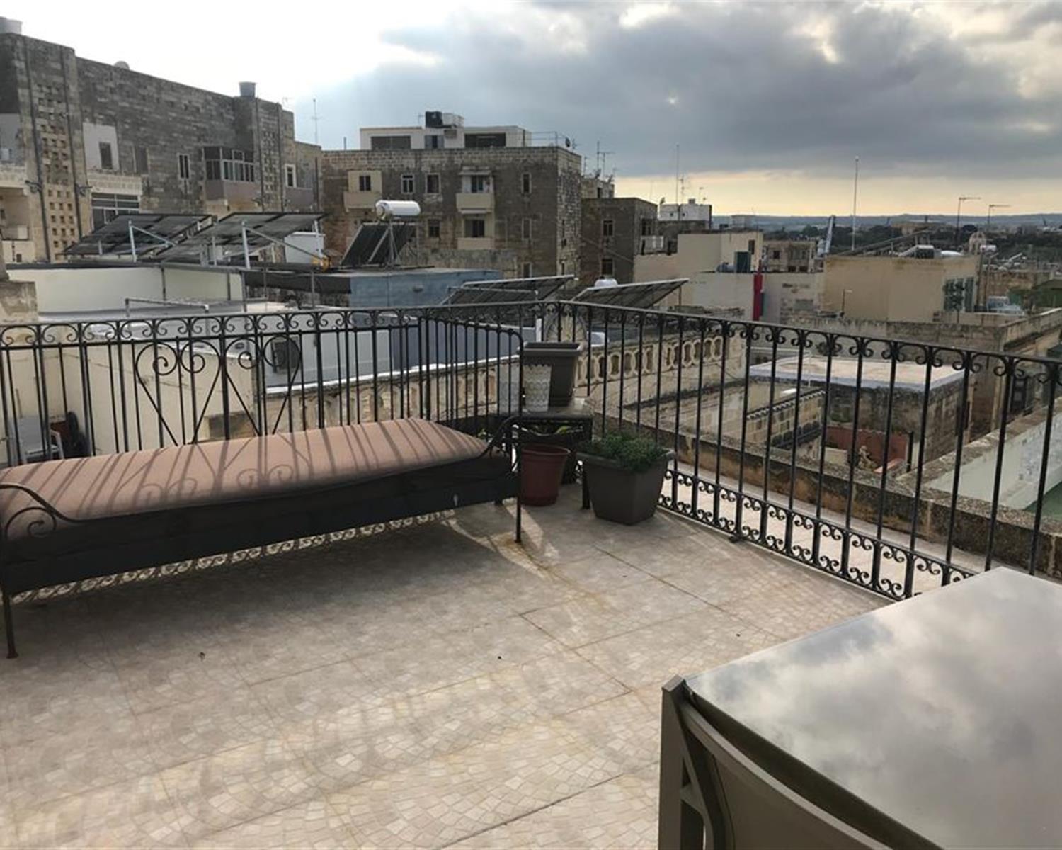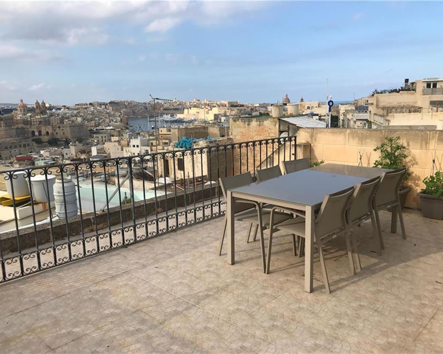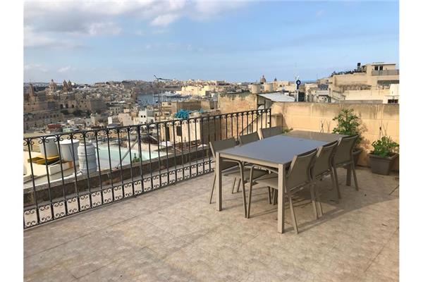 COSPICUA - A fantastic, bright and airy corner duplex apartment in a block of only three, set on a pretty alley in Cospicua. This property is built in traditional limestone, and the style in in-keeping with the rest of the traditional homes found within the street. Set on two levels, the first level of this property consists of a bright and spacious kitchen, double bedroom (with walk-in closet), a laundry room and a guest bathroom. The second level consists of a large living/dining area leading on to an extremely spacious terrace with truly beautiful views. Property is close to amenities and a few seconds walk away from the bus terminus and ferries. This apartment is a true gem, set within a historical city offering numerous cozy wine bars, restaurants, public garden and sea. Cleaning services are provided once a month.