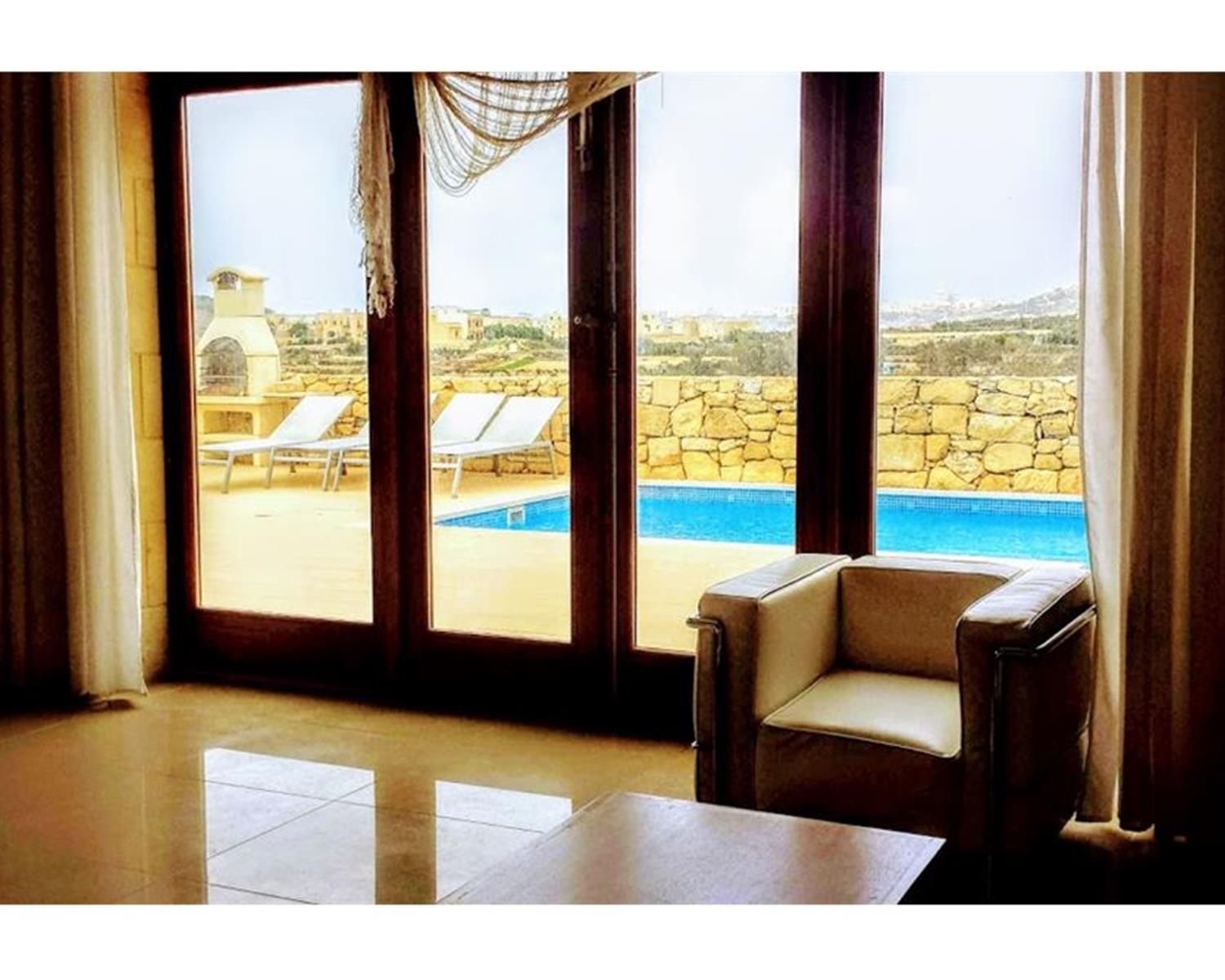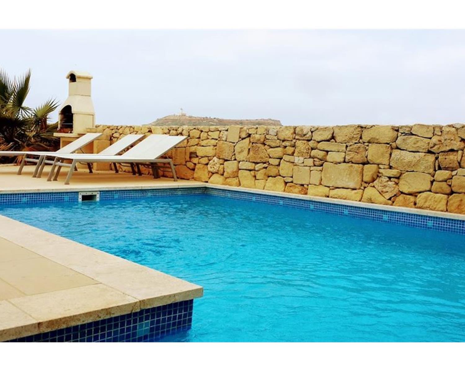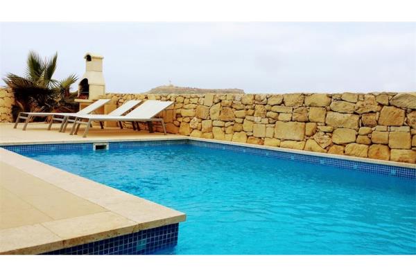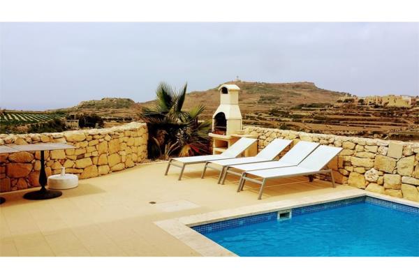 GHARB - Located on the outskirts of the village and enjoying spectacular views, this House Of Character comprises of an entrance into a large combined living, dining and kitchen area, five bedrooms, four en suit shower and bathroom, pool area with deck and BBQ area, games room, gym and three terraces. Property is ideal as a private residence or to operate as a B&B. It is fully air conditioned. €1800 per month