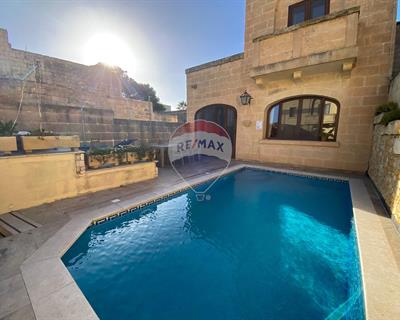 Nestled on the outskirts of the picturesque village of GHARB, is this well-kept HOUSE OF CHARACTER perfectly blends traditional charm with modern comfort. The property features four spacious bedrooms, each with its own private en-suite bathroom, an open-plan kitchen, dining, and living area complete with a cozy wood-burning fireplace. From the living area a door opens onto a sunny pool and deck area, ideal for relaxing or entertaining. Located in one of Gozo’s most quaint villages, this property makes an ideal long-term home for those seeking comfort, character, and a touch of island charm.