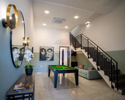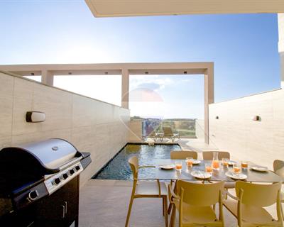 Situated on the tranquil outskirts of GHARB, this stunning three-bedroom modern TERRACED HOUSE forms part of a brand-new, exclusive development finished to the highest standards. Designed for contemporary living, the home enjoys panoramic countryside views and exudes style and comfort throughout. Spread over three levels, the property welcomes you with a private carport leading into a beautifully designed ground floor featuring a living area, kitchenette, games room, and a bedroom with en-suite. A marble staircase leads to the first floor, where a bright and spacious open-plan kitchen, dining, and living area opens onto a large terrace with a full-sized pool, sun deck, and BBQ area — perfect for entertaining while taking in the breath-taking views. A guest toilet completes this level. The top floor includes two additional bedrooms, both with private en-suites, offering comfort and privacy.