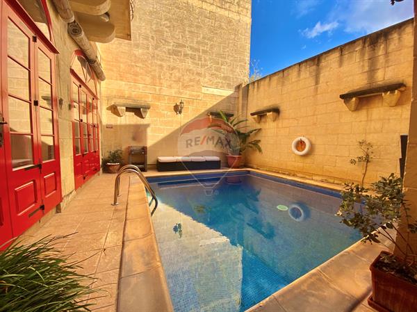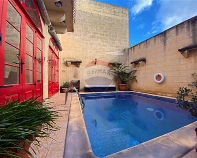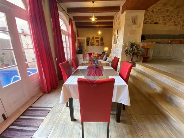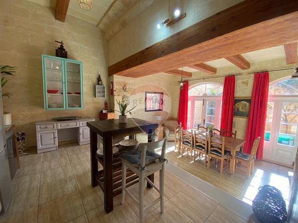 Situated on the outskirts of QALA is this beautiful FARMHOUSE offering contemporary and rustic interiors which have been tastefully finished to offer modern comfort. Accommodation consists of an entrance into a living area, dining, fully equipped kitchen (+ dishwasher) which opens onto an outdoor space with a good sized pool area and main bathroom on the ground floor. A staircase brings you onto the upper floor having 3 bedrooms one with en-suite shower and a main shower and the top floor brings you to a lovely roof terrace enjoying stunning country and distant sea. One of a kind property!!