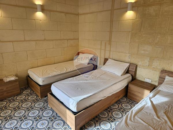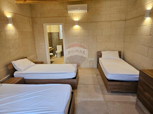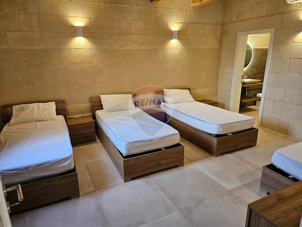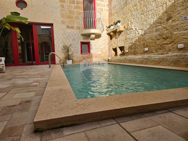 Beautiful 3-bedroom farmhouse in Xewkija offering a private pool and rich traditional Gozitan features throughout. The welcoming pool area is ideal for relaxing and entertaining, while the property is fully air-conditioned for year-round comfort. The farmhouse includes 3 bedrooms (one with ensuite), a total of 4 bathrooms, and a spacious kitchen, living, and dining area. An internal yard adds natural light, and the roof terrace provides additional outdoor space. Conveniently located close to all amenities and just steps from the village square. Comfortably sleeps up to 9 persons, making it ideal for family living.