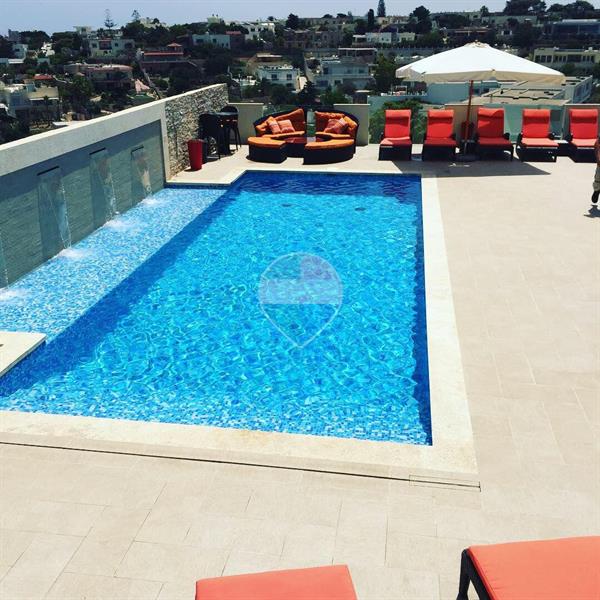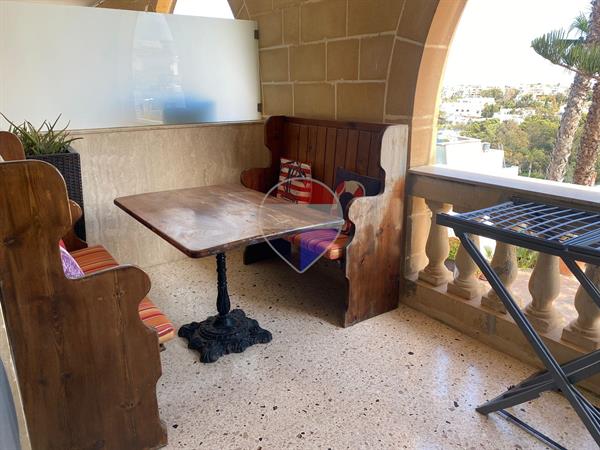 Mellieha - A spacious and bright two-bedroom, two-bathroom upper floor maisonette situated in a quiet area within a well-kept complex. The property offers a comfortable layout with plenty of natural light throughout, as well as a private outdoor terrace complete with outdoor furniture, ideal for relaxing or dining outside whilst enjoying breathtaking views. Residents also have access to a communal swimming pool and large gardens, perfect for barbecues and entertaining. Additional costs include €25 per person per month covering water and gas (used for the oven and water heater), electricity is charged separately according to consumption via meter, and there is a €70 monthly fee for the maintenance and cleaning of common areas, including the upkeep of the pool.