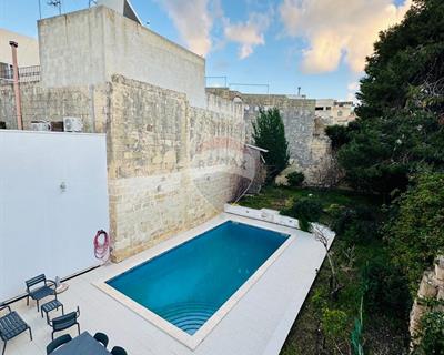 Mosta - 5 bedrooms and 2 car garage. This spectacular residence has been meticulously restored, blending historical charm with modern design. Upon entry, you are welcomed by an office and a wide entry hall adorned with a striking architectural stone slab ceiling. This leads to a patio, a guest bathroom, and a spacious kitchen that flows into an open-plan living and dining area and a separate formal dining room. The living space opens onto a generous private outdoor area of approximately 226sqm, featuring a garden, a large entertaining terrace, and a pool. The first floor offers five bedrooms, two of which include en-suite bathrooms, along with a large balcony and a laundry room overlooking the pool and garden. An interconnected street-level garage is included in the price. This exceptional property is a true gem and must be seen to be fully appreciated! Contact your agent today to arrange a viewing.