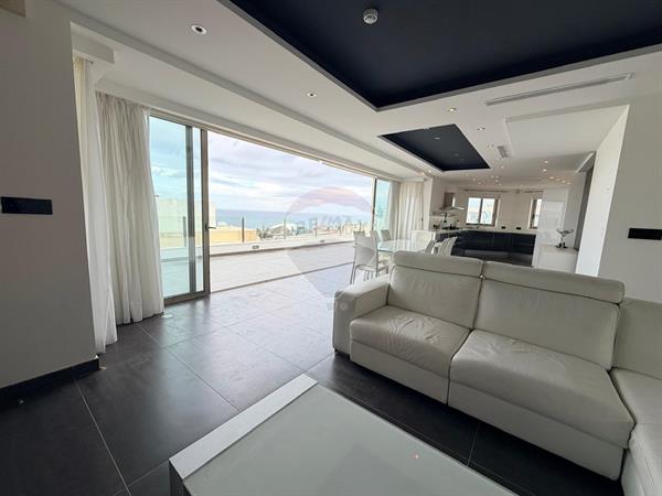 Qawra : This fully furnished penthouse is available for rent in the popular area of San Pawl il-Baħar, Qawra. The property offers a spacious open-plan layout, three comfortable bedrooms, a main bathroom, and an ensuite shower. It is served by a lift for added convenience. Bright and modern throughout, the apartment enjoys large east-facing windows and stunning open sea views. A generous corner terrace features a private Jacuzzi, perfect for relaxing, while the seafront balcony offers beautiful panoramic coastal views.
