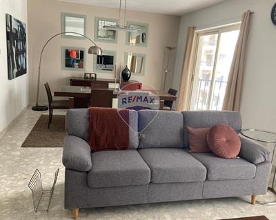Located in St Julian’s, this well-presented apartment offers a spacious and practical layout throughout. Upon entry, one is welcomed into a large open-plan living and dining area, filled with natural light and opening onto a front balcony, ideal for outdoor seating and everyday relaxation. The dining area comfortably accommodates a full-sized dining table, making the space ideal for both daily living and entertaining. A corridor leads from the living area to the fully equipped kitchen, which features ample storage, generous worktop space, and a small breakfast island. The kitchen is partially separated from the living area by an open serving partition and is fitted with a fridge and freezer, hob, oven, microwave, dishwasher, extractor hood, washing machine, and hot water heater. A window provides natural light and ventilation. The property comprises three double bedrooms, all well sized. The main bedroom enjoys an en-suite bathroom and direct access to a large back balcony. The second bedroom is also connected to the back balcony, while the third bedroom is equally suitable as a double bedroom, guest room, or home office. A main bathroom fitted with a bathtub, together with a box room, completes the layout. The apartment is fully air-conditioned in all bedrooms and in the living room and further benefits from both a front and a back balcony, offering outdoor space on both sides of the property.