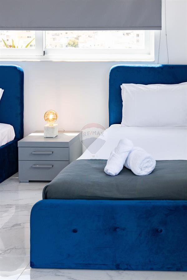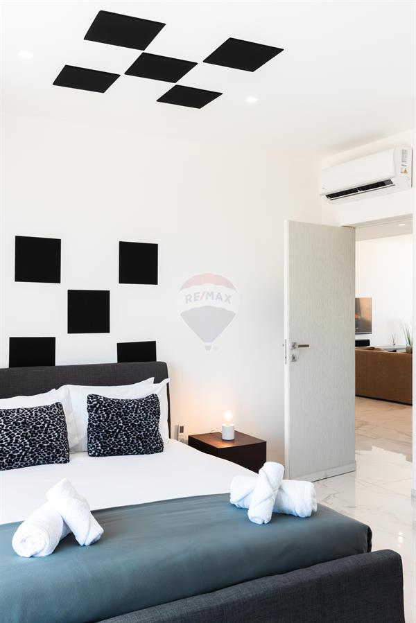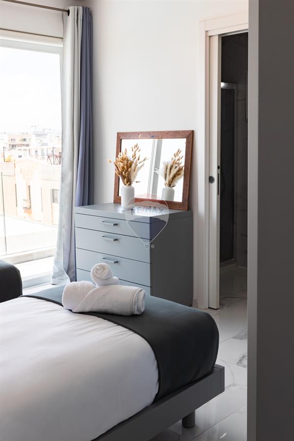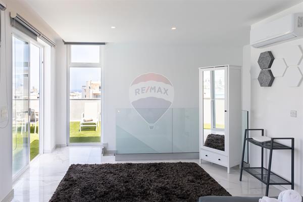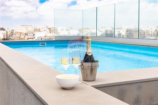 ST. JULIAN'S - A luxuriously finished duplex penthouse, enjoying a large a terrace with a private swimming pool/jacuzzi, situated close to the heart of this town. Layout is in the form of an open plan living/dining, a kitchen, a guest toilet room and two double bedrooms (main with with an en-suite). It is modernly furnished and fully equipped with modern day gadgets. Must be seen!
