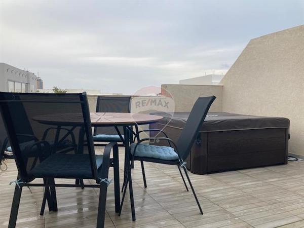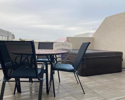 SWEIQI - Two bedroom stylish DUPLEX PENTHOUSE. Situated in a residential area, yet just a short walk to St Julian's and close to amenities, this duplex penthouse offers modern comfort and convenience. The open-plan kitchen, living, dining leads to a spacious terrace featuring a Jacuzzi. A sleek glass and wooden staircase connects the two levels of the home. The primary double bedroom boasts a private balcony, a walk-in wardrobe and an ensuite shower room. The second double bedroom also enjoys a back balcony.. A separate guest shower room adds convenience. The laundry area is fully equipped with a washing machine and tumble dryer. Air conditioned throughout. Not to be missed!