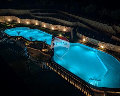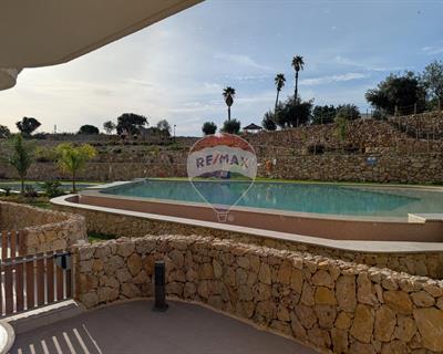 Qala, ready to move in, this modern and fully air-conditioned apartment is virtually unused, situated on the ground floor of an exclusive development, and comes fully finished and furnished*. The spacious apartment (around 135 sqm) features three bedrooms, one with an en-suite bathroom, a separate main bathroom, and an open plan area with the kitchen, dining, and living room. The unique inner courtyard offers flexible usage possibilities. The apartment is complemented by a spacious terrace, enclosed by a traditional rubble wall, which is only a short walk from one of the wonderful communal pools. The two pools are surrounded by lush landscaping, providing ample green space for relaxation. A dedicated gazebo and BBQ areas make this a fantastic opportunity for a permanent home or rental investment. The L-shaped kitchen has a cooking island and a stylish hood, featuring spotlights all around. A reverse osmosis unit serves fresh water,. The main bath is equipped with a walk-in shower, while the ensuite has a shower with a sliding door. LAN cabling is available in all rooms, making it easy to set up various Internet connections. The apartment is fitted with a 400V three-phase power connection, easily supporting various equipment. The dedicated VRF AC unit operates efficiently without interfering with other power requirements.