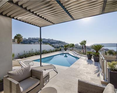Perched elegantly on the elevated grounds of the prestigious Santa Maria Estate, this impeccably finished semi detached villa commands breathtaking panoramic sea and countryside views. Designed for the most discerning buyer, this luxurious residence seamlessly blends sophistication with ultimate comfort. The impressive second floor, blessed with soaring high ceilings that create an extraordinary sense of volume and grandeur, is dedicated to entertaining and everyday living. It features a spacious and beautifully appointed open-plan kitchen, living and dining area that flows effortlessly into a cosy TV room, with the added convenience of a guest toilet on the same level. The first floor hosts five spacious bedrooms—each with its own luxurious en-suite bathroom—offering serene retreats with unparalleled privacy. Modern engineering ensures year-round comfort: underfloor heating, discreetly integrated air-conditioning throughout, and triple-glazed thermal insulation on all apertures for exceptional energy efficiency and tranquillity. Outdoor living is elevated to perfection with expansive wrap-around terraces, a beautiful swimming pool surrounded by a generous deck, manicured gardens, and a substantial 5–6 car garage with ample space for a private gym. A rare gem in one of Malta’s most exclusive addresses—this is upscale living redefined.