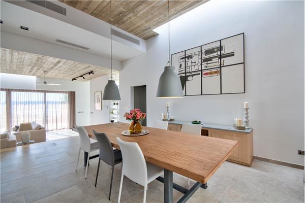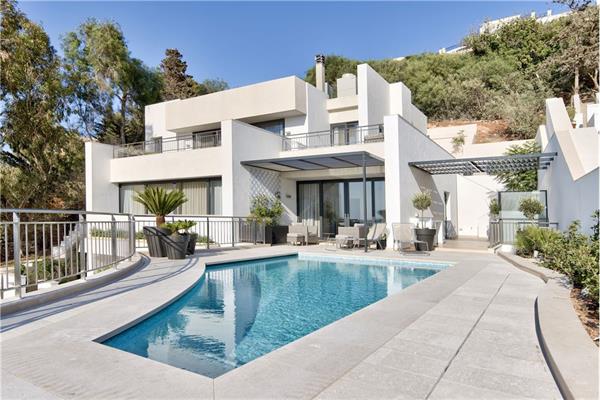 Perched elegantly on the elevated grounds of the prestigious Santa Maria Estate, this impeccably finished semi detached villa commands breathtaking panoramic sea and countryside views. Designed for the most discerning buyer, this luxurious residence seamlessly blends sophistication with ultimate comfort. The impressive second floor, blessed with soaring high ceilings that create an extraordinary sense of volume and grandeur, is dedicated to entertaining and everyday living. It features a spacious and beautifully appointed open-plan kitchen, living and dining area that flows effortlessly into a cosy TV room, with the added convenience of a guest toilet on the same level. The first floor hosts five spacious bedrooms—each with its own luxurious en-suite bathroom—offering serene retreats with unparalleled privacy. Modern engineering ensures year-round comfort: underfloor heating, discreetly integrated air-conditioning throughout, and triple-glazed thermal insulation on all apertures for exceptional energy efficiency and tranquillity. Outdoor living is elevated to perfection with expansive wrap-around terraces, a beautiful swimming pool surrounded by a generous deck, manicured gardens, and a substantial 5–6 car garage with ample space for a private gym. A rare gem in one of Malta’s most exclusive addresses—this is upscale living redefined.