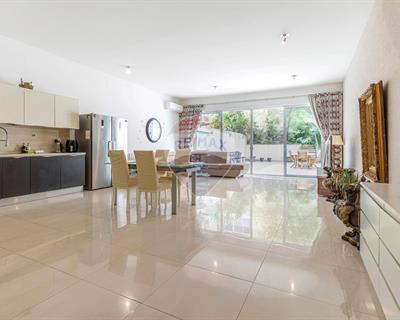 Set within a peaceful valley yet moments from Mellieha's amenities, this furnished three-bedroom apartment occupies a highly desirable position in the village centre. Measuring approximately 200 square metres, the residence unfolds across a generous 56-square-metre open-plan reception encompassing kitchen, dining and living spaces, three double bedrooms—the principal with en-suite facilities—and a practical utility room. The property's particular distinction lies in its 78-square-metre private yard, sufficiently proportioned to accommodate a pool, offering a complementary extension to the already spacious interior living spaces enjoying 3.2m high ceilings. Such outdoor provision remains uncommon within Mellieha's established residential quarters.