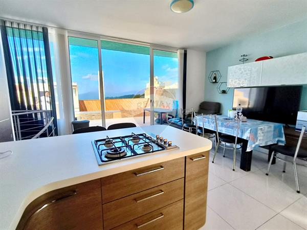 Qawra – Duplex Penthouse for Sale | Spacious and modern property featuring 2 bedrooms with the option of a third, bathroom, shower, and guest toilet, as well as an outdoor laundry area. A large terrace with a built-in BBQ setup provides the perfect space for entertaining, while airspace is included, offering the potential to build an additional level. Conveniently located in a prime area with easy parking, this fully furnished residence is move-in ready and ideal as a comfortable home or investment opportunity.
