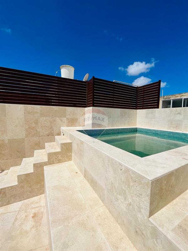 Nestled in the heart of Zejtun’s UCA (Urban Conservation Area). The layout comprises a spacious open-plan kitchen/living/dining area with guest bathroom and a spacious yard on the ground floor. A beautiful staircase leads to the first floor, where you’ll find 3 double bedrooms and a study room. Main bedroom with en-suite and walk-in wardrobe, other bedroom with en-suite. At roof level, a washroom, kitchen and expansive rooftop space provide additional outdoor living areas. This property being sold freehold with airspace. Get in touch to book a viewing today.